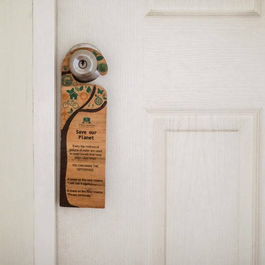 Eco-friendly Water Hyacinth Vegan Leather Save our Planet Hotel Door Signage