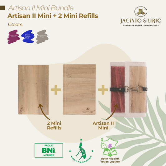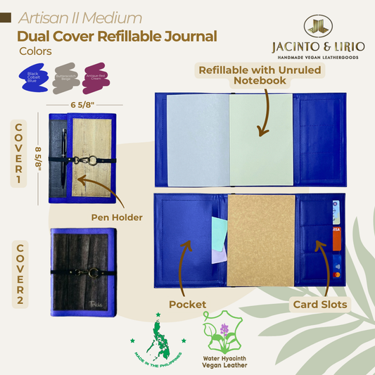 Artisan II Medium Dual Cover Refillable Vegan Leather Journal + 1pc Artisan II Mini Dual Cover Passport Holder and Refillable Journal Bundle