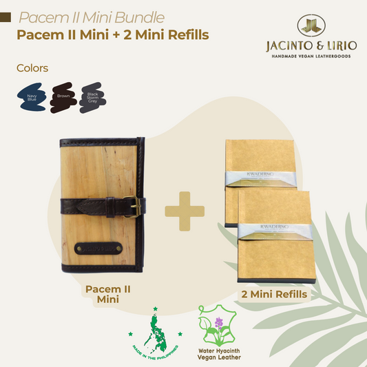 Pacem II Mini Refillable Vegan Leather Blank Journal and Passport Holder + 1pc Bronze Refill + 1pc Silver Refill Bundle
