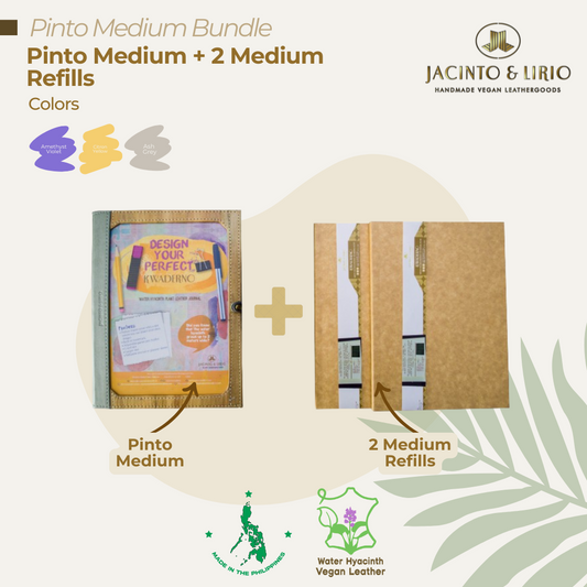 Pinto Personalizable Refillable Vegan Leather Journal (Medium) + 1pc Passport Holder or Journal Bundle