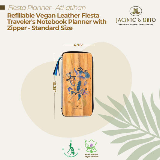 Refillable Vegan Leather Fiesta Traveler's Notebook Planner with Zipper - Standard Size