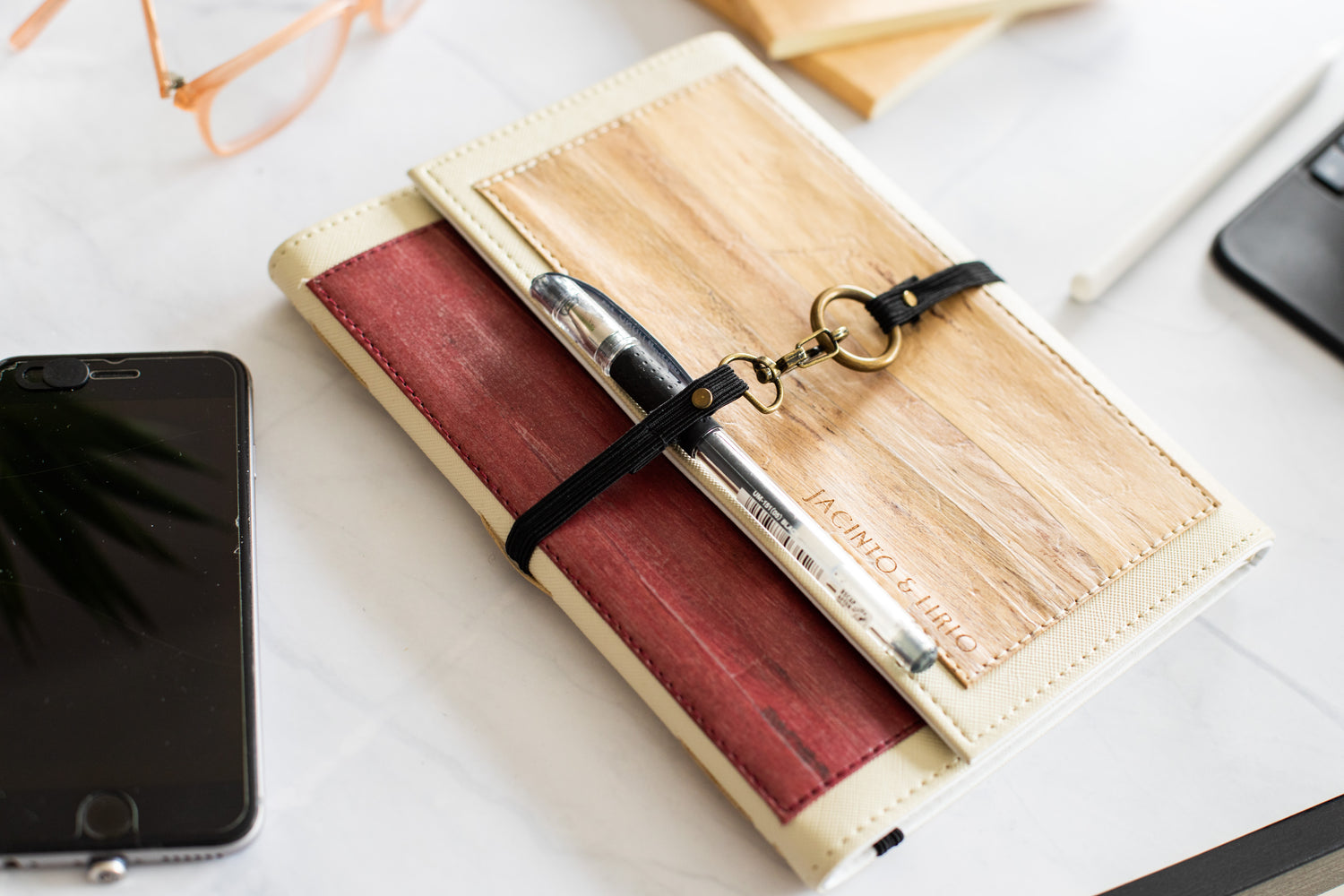 Our brand uses sustainably harvested vegan leather that helps in lessening the water hyacinths that are infesting bodies of water in different local communities The cover is made of water resistant hyacinth plant leather, which is a good conversation starter! No animal was harmed in the process of manufacturing our products.
