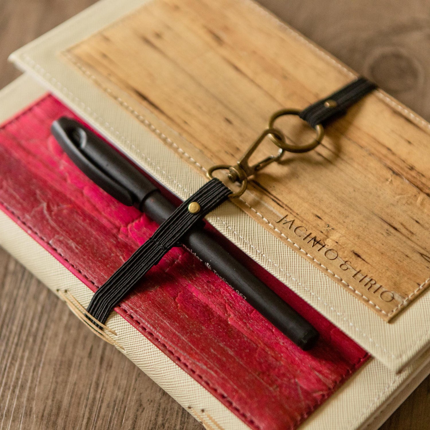 The Artisan journal by Jacinto & Lirio boasts a distinct cover design, ideal for individuals seeking a bold and innovative option. Its unique cover showcases a reversible two-fold flap, accented with hand-stitched spine details, a buckle, and interior slits for organizing cards, papers, and currency. This cover is tailored for those desiring a professional yet stylish and distinctive case for their journals and documents. With its refillable feature, it seamlessly transforms into a recognizable passport holder. Furthermore, its pages are suitable for various writing mediums, from calligraphy to watercolor.