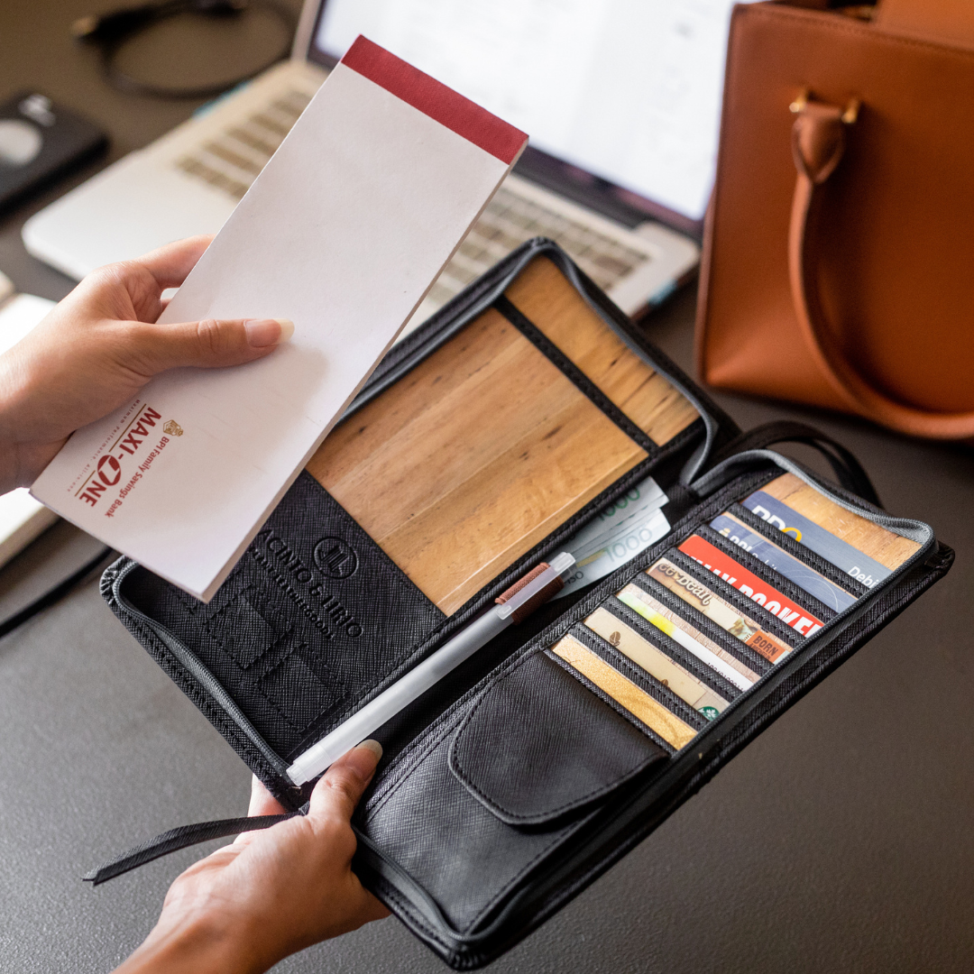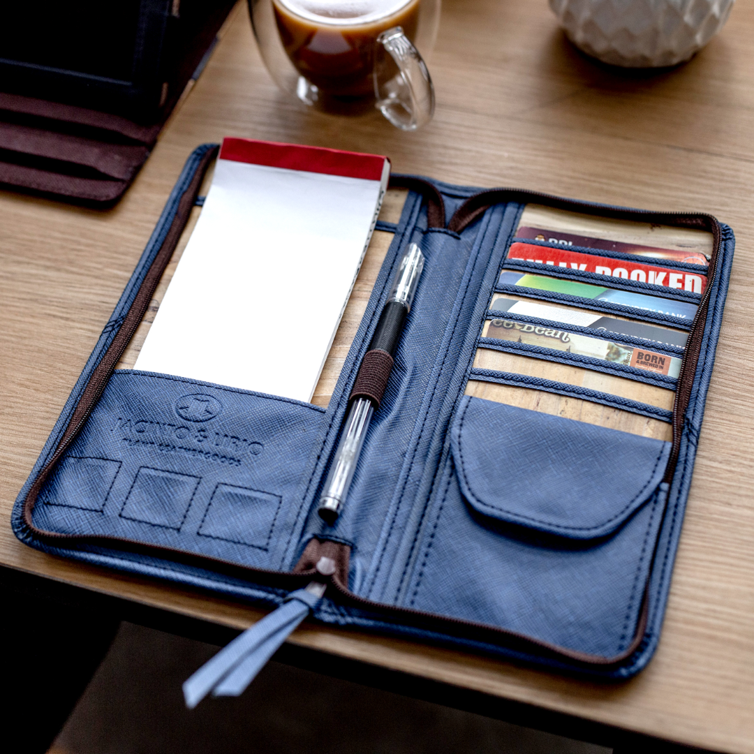 Be it a thin pencil or a thick marker, the garterized penholder adjusts to any pen size stored inside the wallet. Hence, it's just within easy reach.