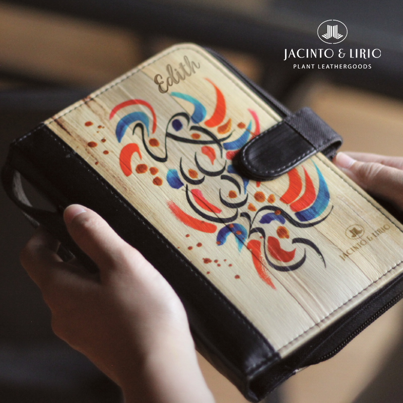 Our brand uses sustainably harvested vegan leather that helps in lessening the water hyacinths that are infesting bodies of water in different local communities The cover is made of water hyacinth plant leather, which is a good conversation starter! No animal was harmed in the process of manufacturing our products.