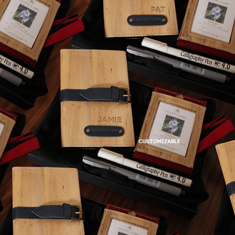 Our brand uses sustainably harvested vegan leather that helps in lessening the water hyacinths that are infesting bodies of water in different local communities The cover is made of water hyacinth plant leather, which is a good conversation starter! No animal was harmed in the process of manufacturing our products.
