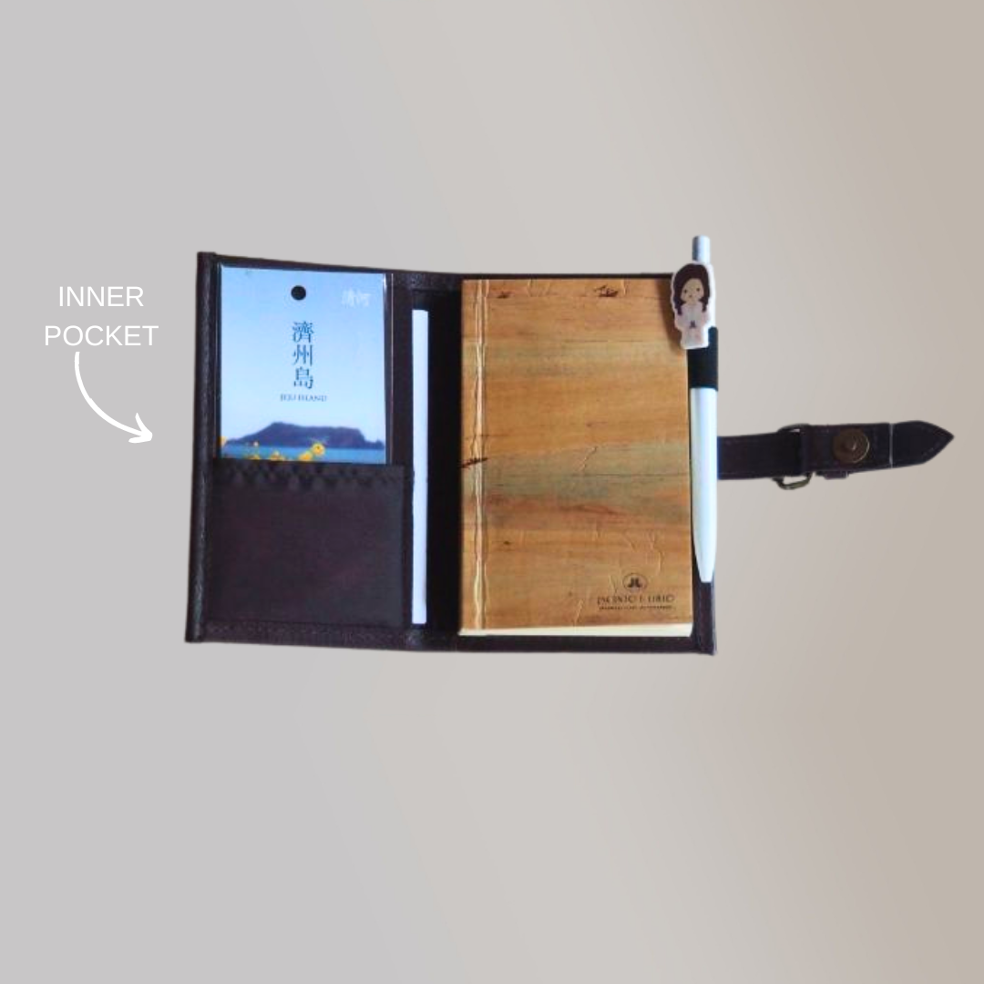 Pacem (or Peace) is freedom from turmoil or the feeling of tranquility. No need to stress yourself out by keeping everything in your head. List them down, write your thoughts and express your feelings on clear, smooth pages in a journal you can call your own. Pacem Traveler’s Journal and Passport Holder is a handmade leather refillable journal cover made from water hyacinth vegan leather. The mini size is ideal for passports. The pages are suitable for all mediums of writing, including calligraphy and watercolor.