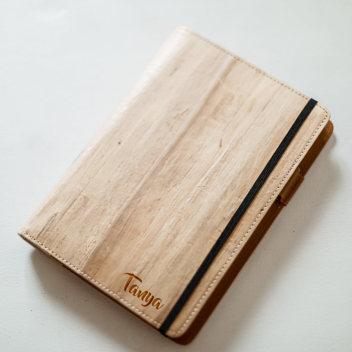 We use plant leather for the covers. No animal was harmed in the process of manufacturing our products. Paint on it using acrylic paint or watercolor after applying a primer; draw using permanent markers.