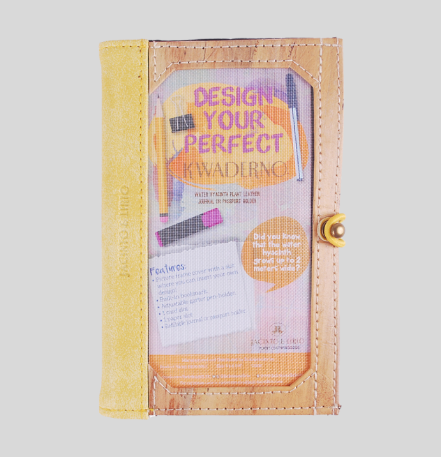 Our brand uses sustainably harvested vegan leather that helps in lessening the water hyacinths that are infesting bodies of water in different local communities The cover is made of water hyacinth plant leather, which is a good conversation starter! No animal was harmed in the process of manufacturing our products