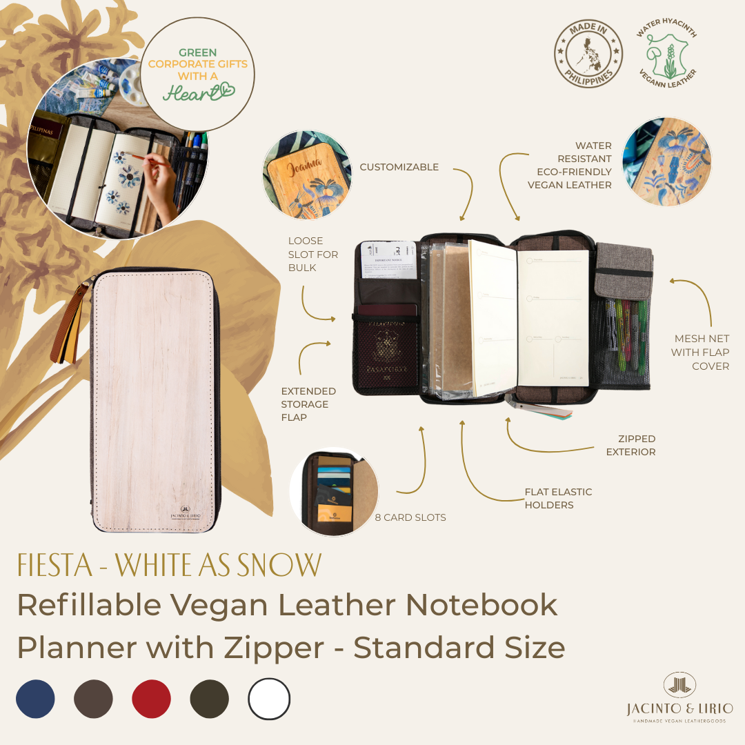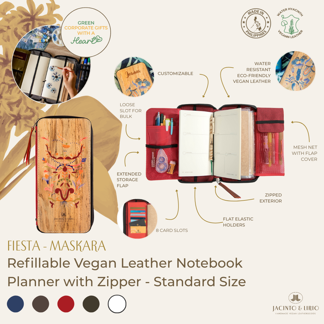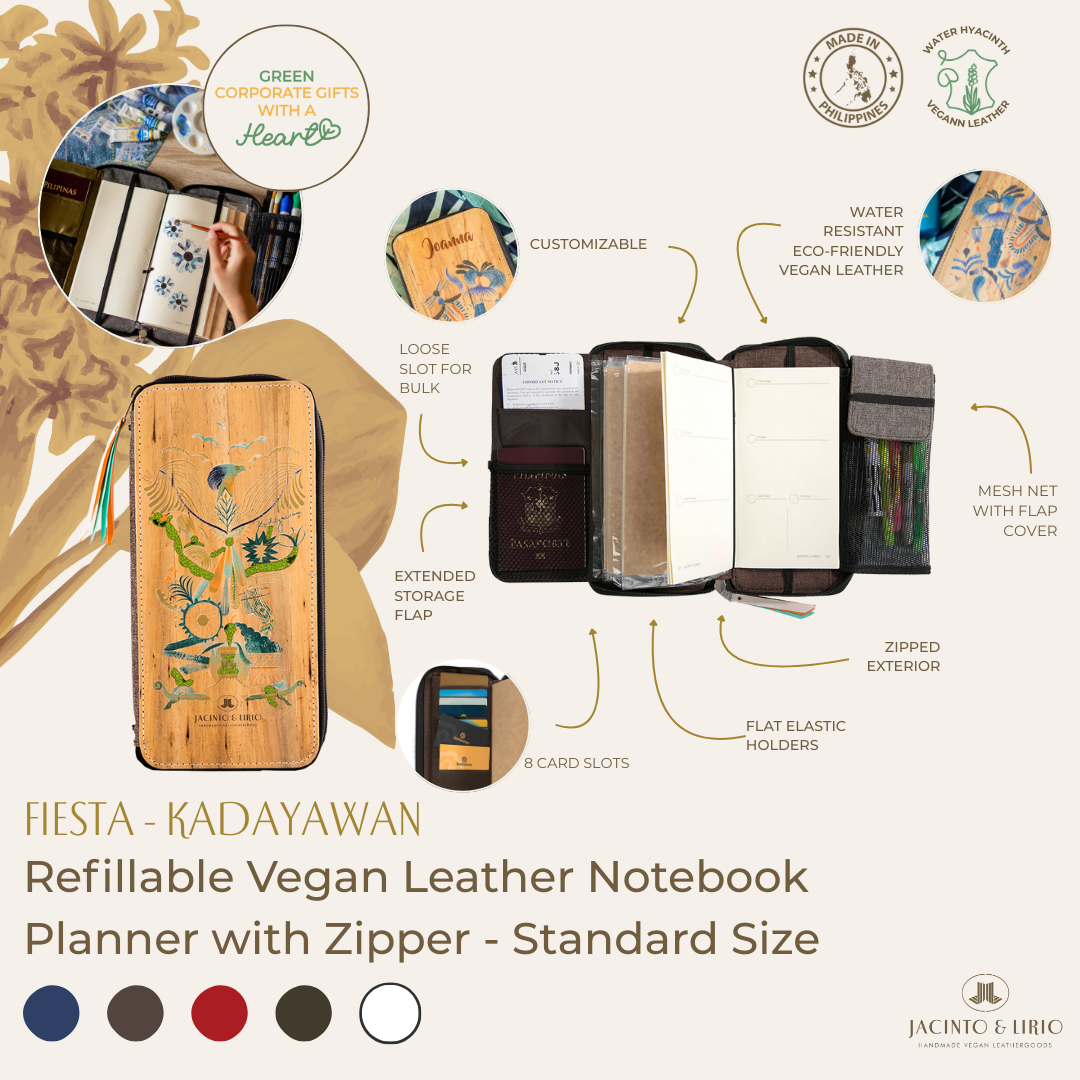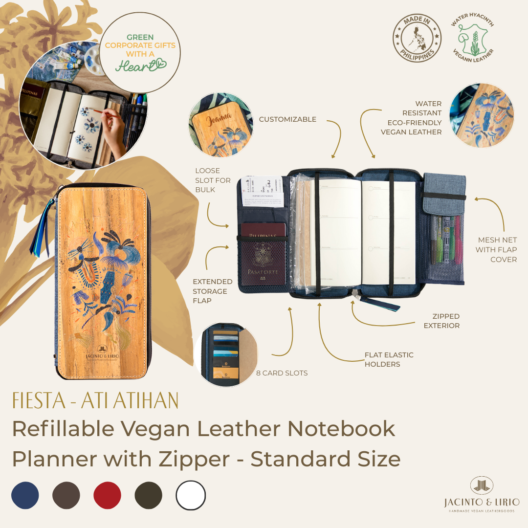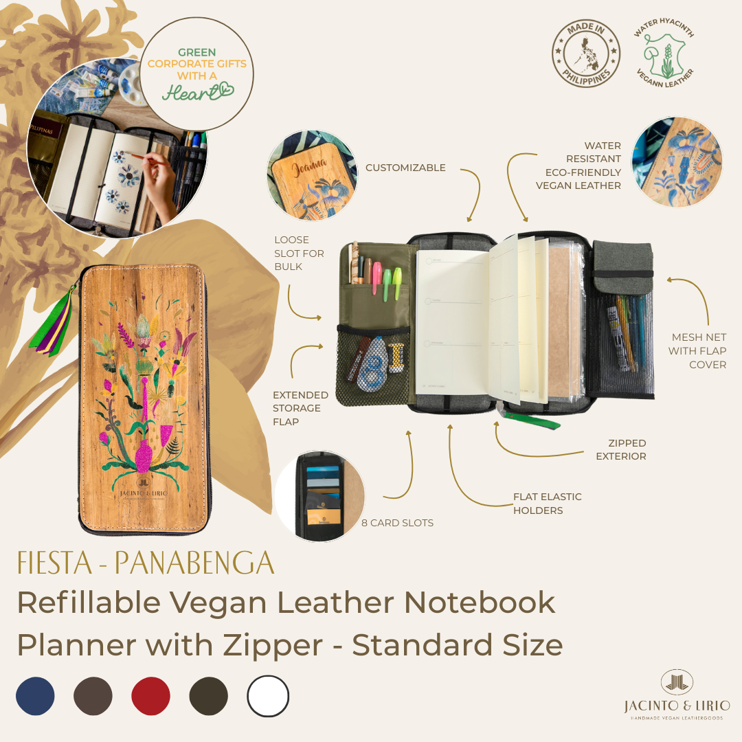 Refillable Vegan Leather Fiesta Traveler's Notebook Planner with Zipper - Standard Size