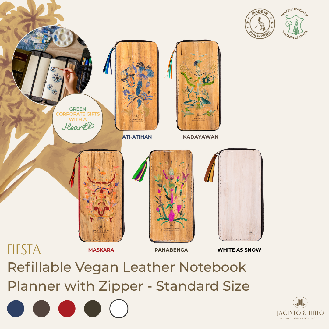 The Fiesta Refillable Vegan Leather Traveler's Notebook Planner features several variations: