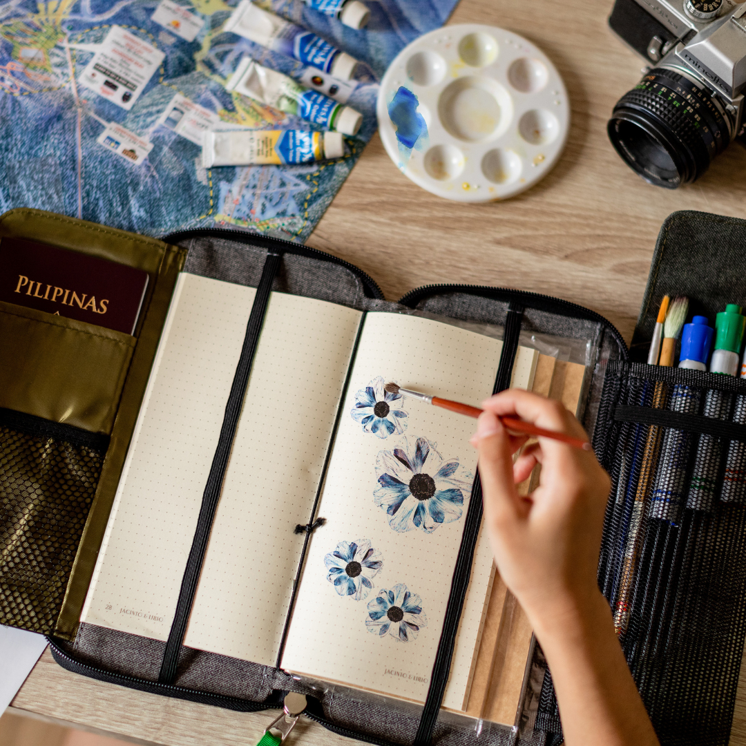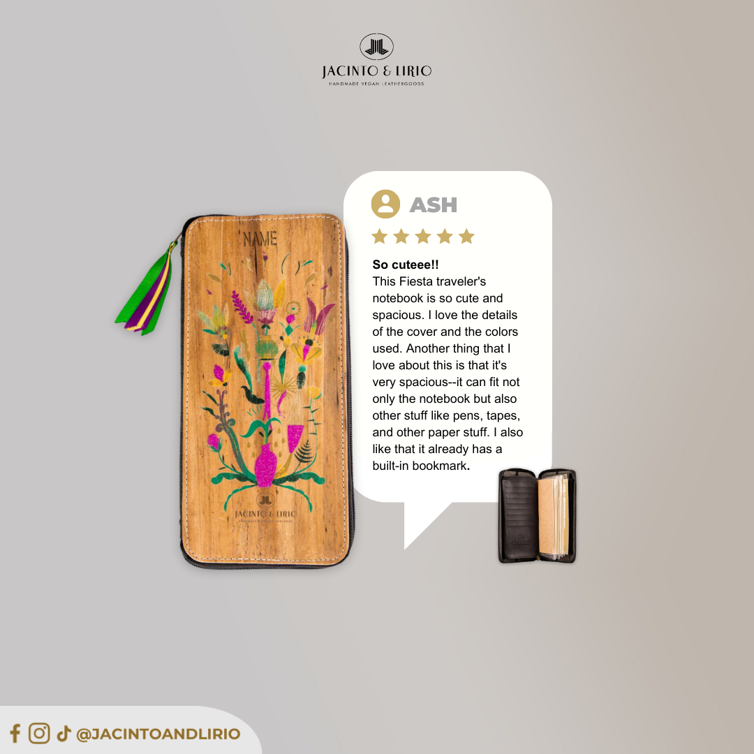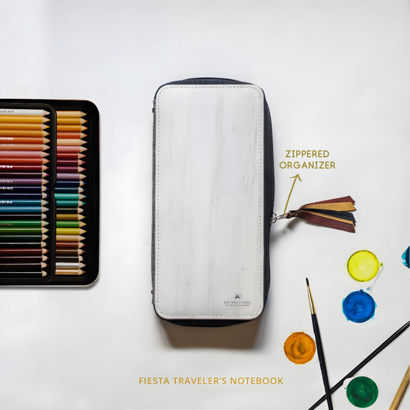 We understand how precious your memories are. There are many ways to document these unforgettable moments. For the creative traveler, artistic journaling is a popular choice. That’s why we created the Fiesta Traveler's Notebook. It is the first ever zippered traveler’s notebook traveler’s notebook especially built to accommodate and organize all the materials you need. There are multiple pockets for tools that will help you creatively express where life has taken you, even to where it’s taking you next! Don’t be afraid to spread some creative fun while sipping cafe au lait at the scenic cafes of Paris or having that refreshing drink on the beaches of Bali. Next thing you know you’ll be starting on a fresh new page in a new country!