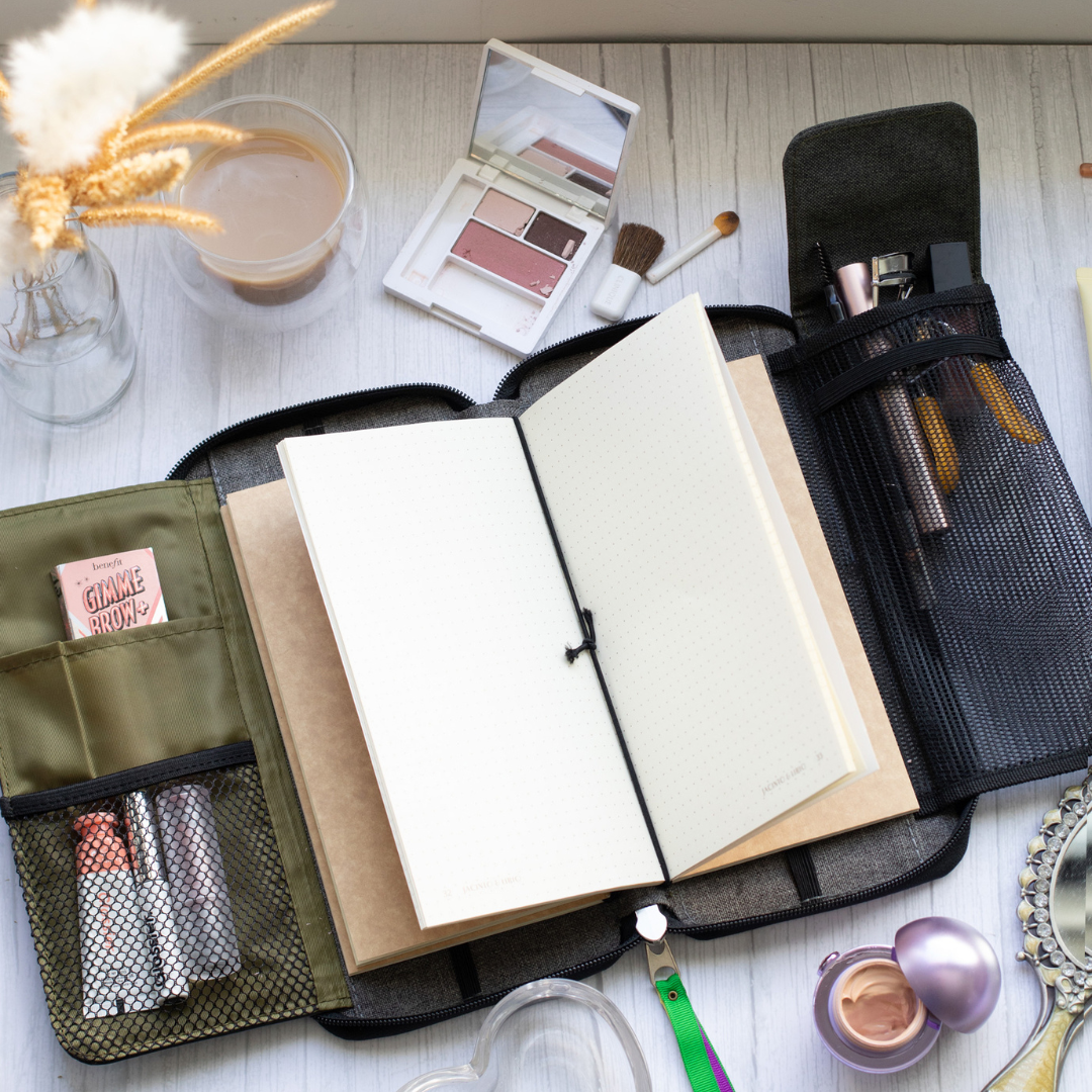 We are the only brand with a zippered traveler's notebook in the market. With a zipper to close the 2 flaps, your journals, brushes colored pens, mobile phones and other valuable items are kept secure and snug.