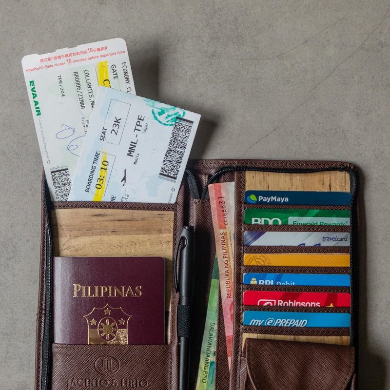 You can store your boarding pass, cards, paper bills or other documents in the inner pockets