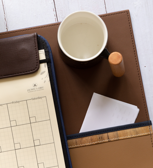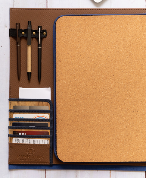 We can curate a mix of our handmade water hyacinth vegan leathergoods with non-water hyacinth items to combine into your preferred stylized gift set personalized with both name and logo.